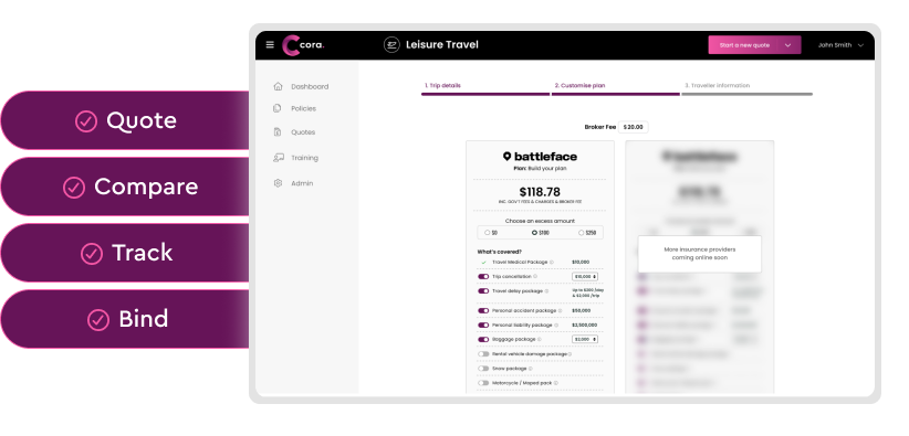 cora is a platform built by insurance.com.au for brokers. Starting with travel, cora aims to provide low touch retail insurance solutions for brokers.